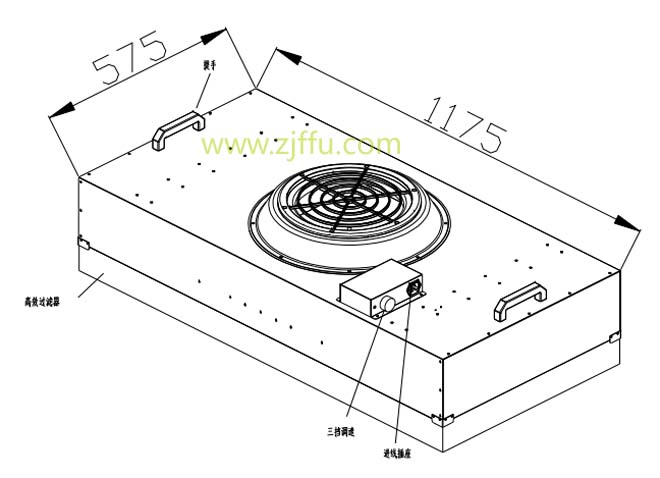 2、型號:ZJ-400-575*575標(biāo)準(zhǔn)FFU圖紙|標(biāo)準(zhǔn)FFU設(shè)計圖